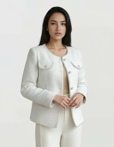 Design: Refined coat with tweed detailing, classic button closure, and a structured silhouette inspired by timeless Parisian tailoring. The clean lines and elegant profile bring sophistication to autumn and winter wardrobes.