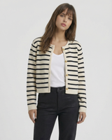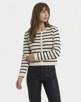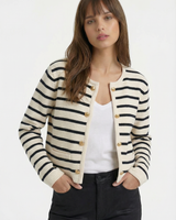 Design: Classic striped cardigan with a sleek open front design and long sleeves, perfect for a polished yet effortless commute style.
