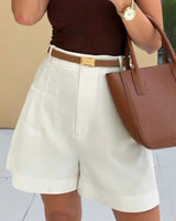 Design: High-waist wide leg five point pants with a modern Japanese inspired silhouette, combining artful retro style with professional workwear appeal.
