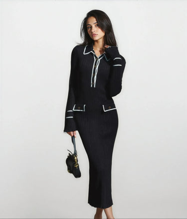 Design: Sophisticated knitted dress featuring ruffled flounce skirt and high waist silhouette, exuding French inspired elegance.