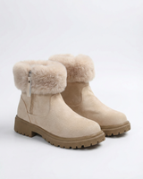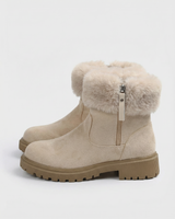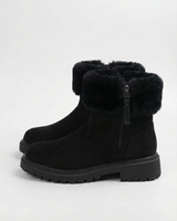 Design: A classic ankle length winter boot with a soft plush cuff, round toe, and side zipper for effortless wear. Finished with a sturdy sole for a refined yet practical cold weather look.