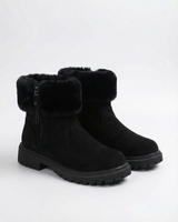 Material: Suede upper paired with a durable rubber sole and plush-lined interior for warmth and structure.
