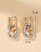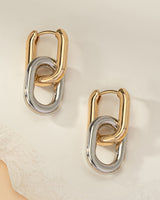 Design: Modern two tone hoop drop earrings with a distinctive lantern inspired U shape, bringing a balance of elegance and edge.