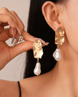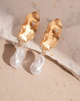 Design: Irregular oval stud earrings accented with luminous imitation pearls, blending French retro charm with modern geometric style.