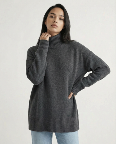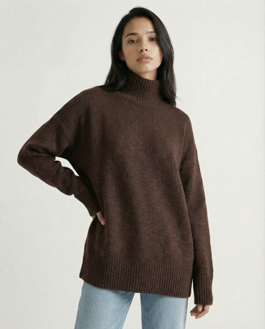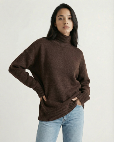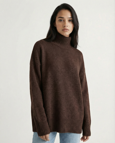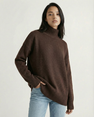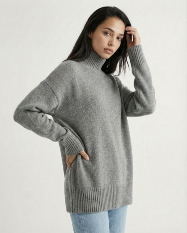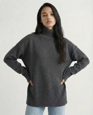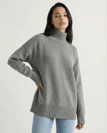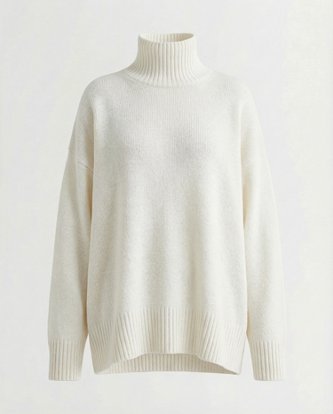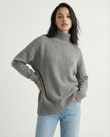 Design: Relaxed turtleneck sweater with a clean, minimalist silhouette for effortless layering.