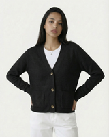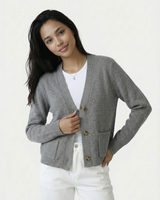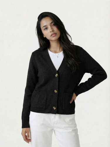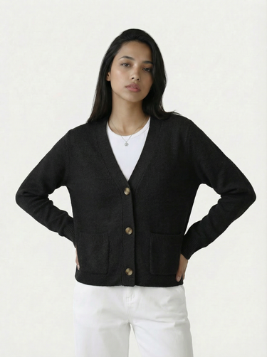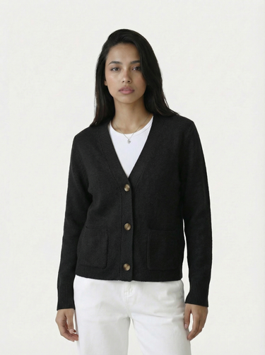 Design: Classic knitted cardigan with a versatile open front design and long sleeves, blending everyday ease with timeless style.