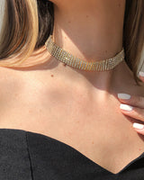 Design: A statement necklace with 6 drill rhinestones silhouette, fully accented in for a bold yet elegant finish.