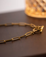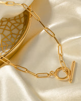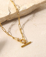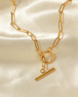 Design: A sleek 316 stainless steel gold necklace, featuring a circular pendant intersected by a polished straight bar that clips seamlessly into the loop. Minimalist yet bold.