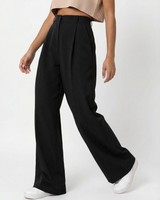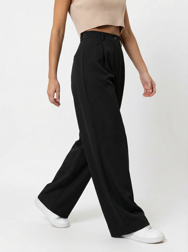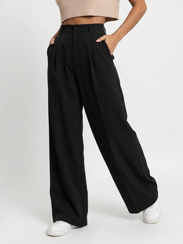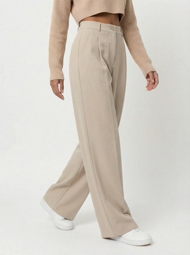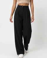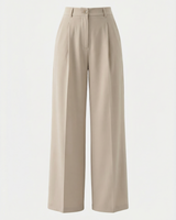 Design: High waist straight leg trousers with a clean, classic silhouette and subtle collage stitching for a refined look
