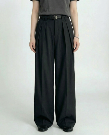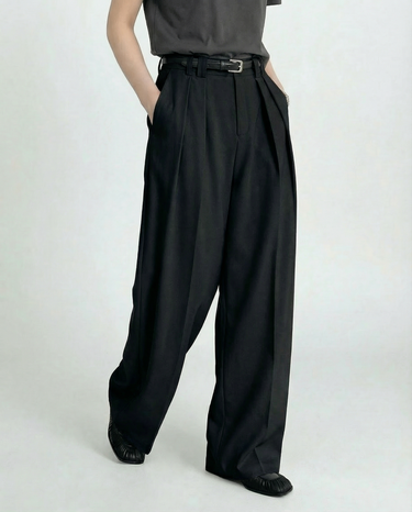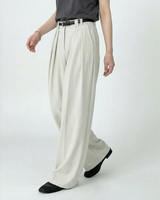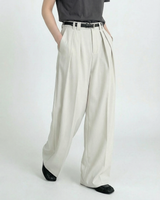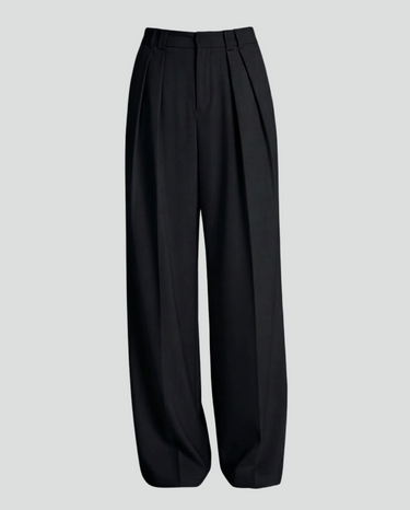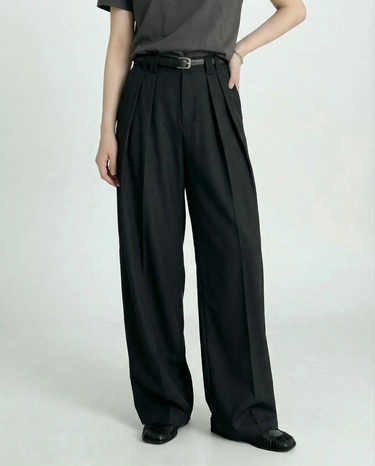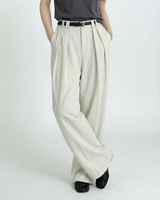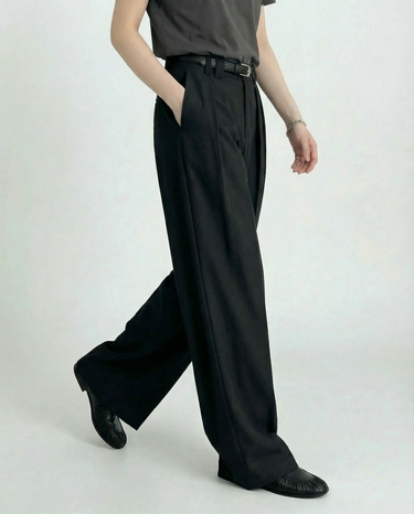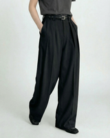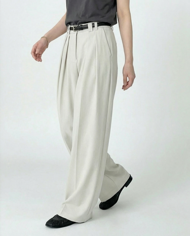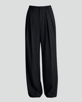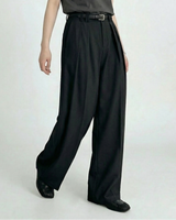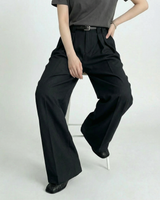 Design: Timeless wide leg tailored pants in black or rice apricot with a straight leg cut for a polished and versatile look