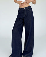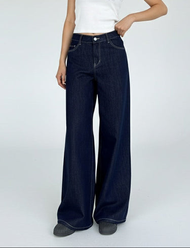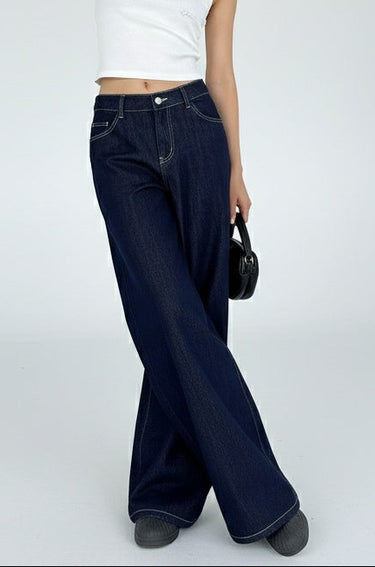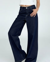 Design: Structured high waist denim trousers feature a clean, wide leg silhouette with smooth tailoring and a flattering straight fall.