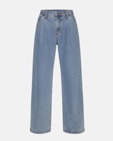 Light Denim Pleat Front Straight Leg Jeans