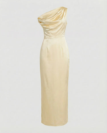 Design: Sleek Off-Shoulder midi dress with a sleeveless cut and streamlined silhouette, crafted for a bold yet elegant statement.