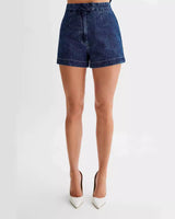 Design: Casual denim inspired set featuring a sleeveless button up vest and matching high waist shorts, combining timeless tailoring with a modern summer edge.