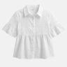 Design: Single breasted top with short frill sleeves and delicate floral embroidery for an elegant, feminine look.