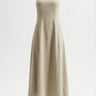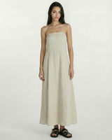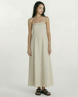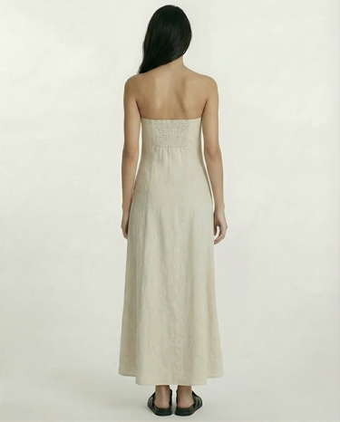 Design: A timeless strapless maxi dress designed with a clean tube top neckline and a softly structured high waist silhouette.