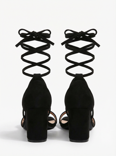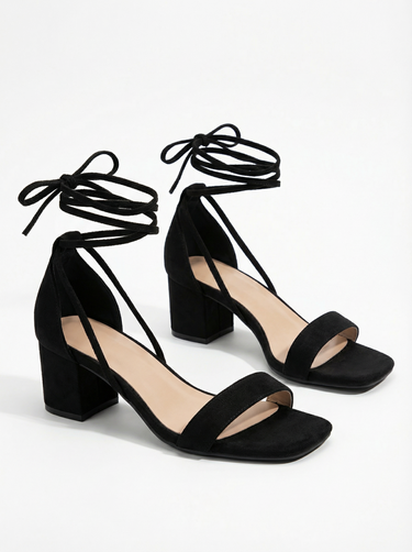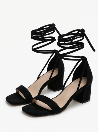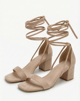 Design: A chic square toe chunky heel with elegant lace up straps, blending modern minimalism with timeless French allure.