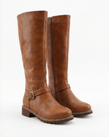 Design: Timeless high rise Martin boot with Roman inspired detailing and classic round toe.