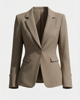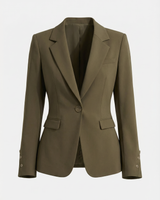 Design: Sophisticated one button suit jacket with a cinch waist and flattering cut. Structured tailoring, offers a modern approach to professional dressing.
