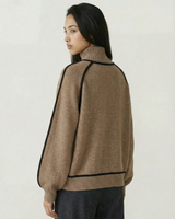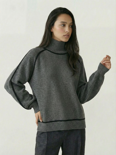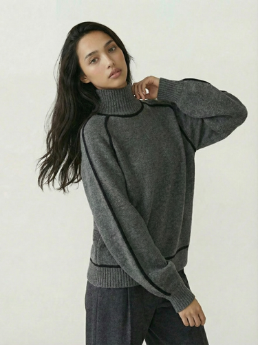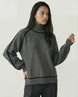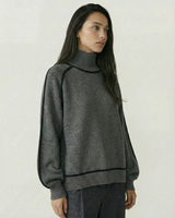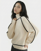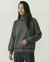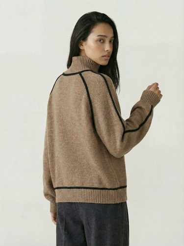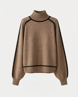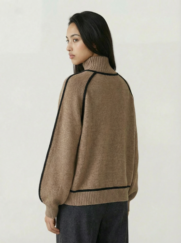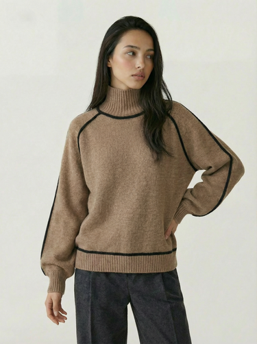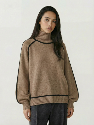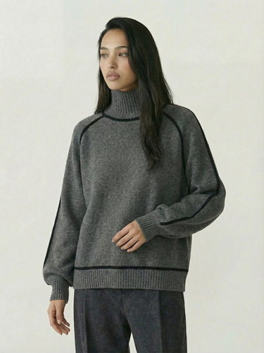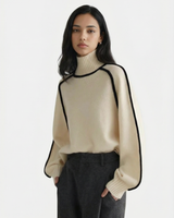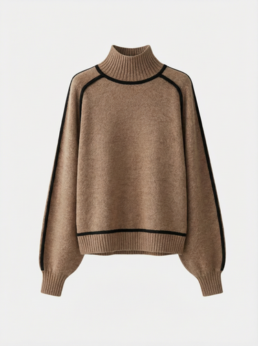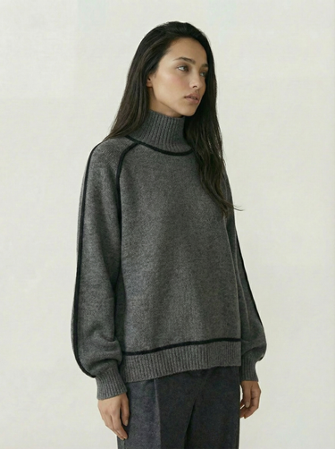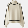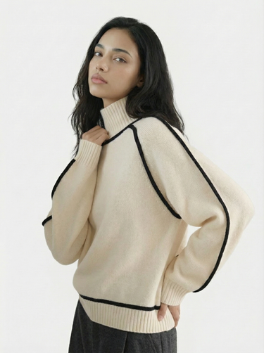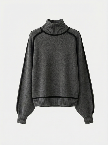 Design: High neck sweater with dramatic raglan lantern sleeves, combining structured warmth with an elegant silhouette. The solid color finish and contrast shaping give it a modern yet timeless appeal.
